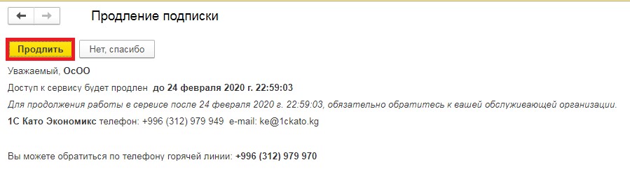 В выведенном окне подтверждения следует нажать кнопку Продлить