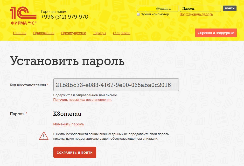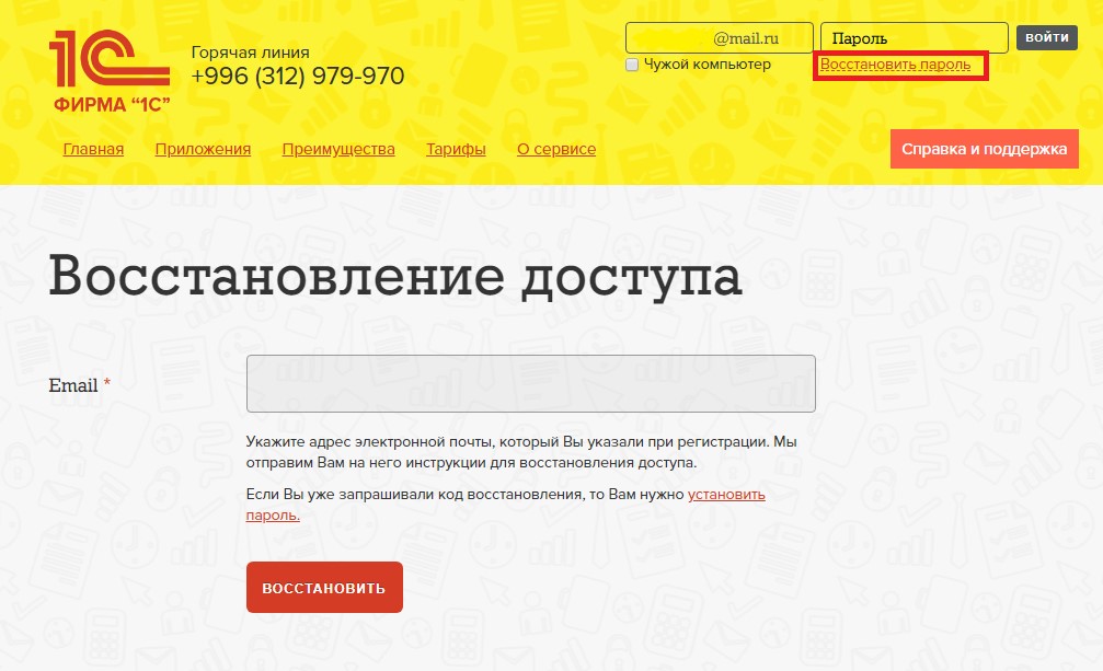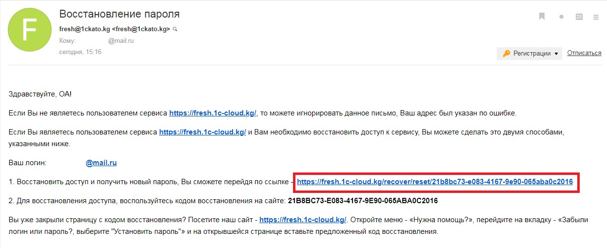 Восстановление пароля в 1сFresh