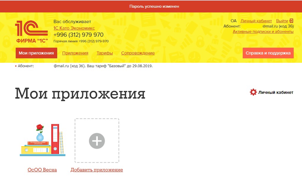 После изменения пароля откроется страница