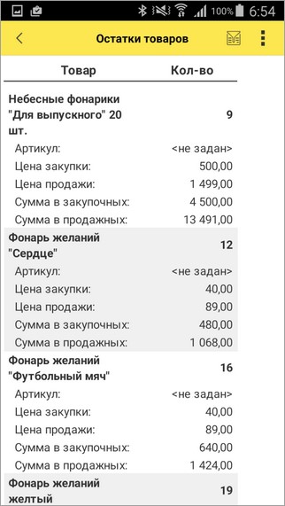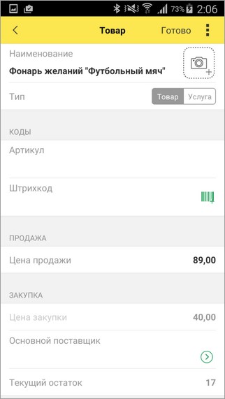 - хранить информацию о товарах, их остатках, ценах продажи и закупки: