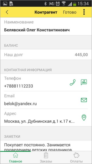 Приложение реализует базовые возможности ведения учета для предприятия с маленьким объемом документов и возможности работы с заказами совместно с